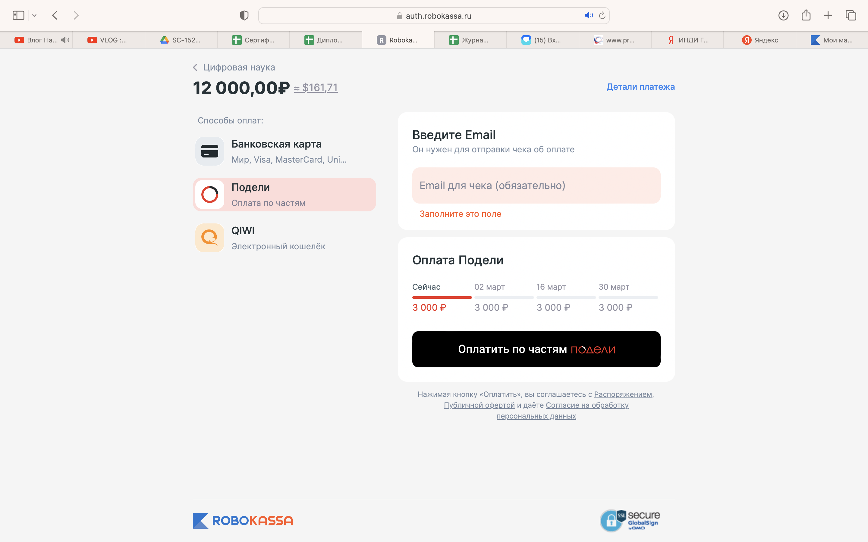 Делите стоимость оплаты на 4 части
