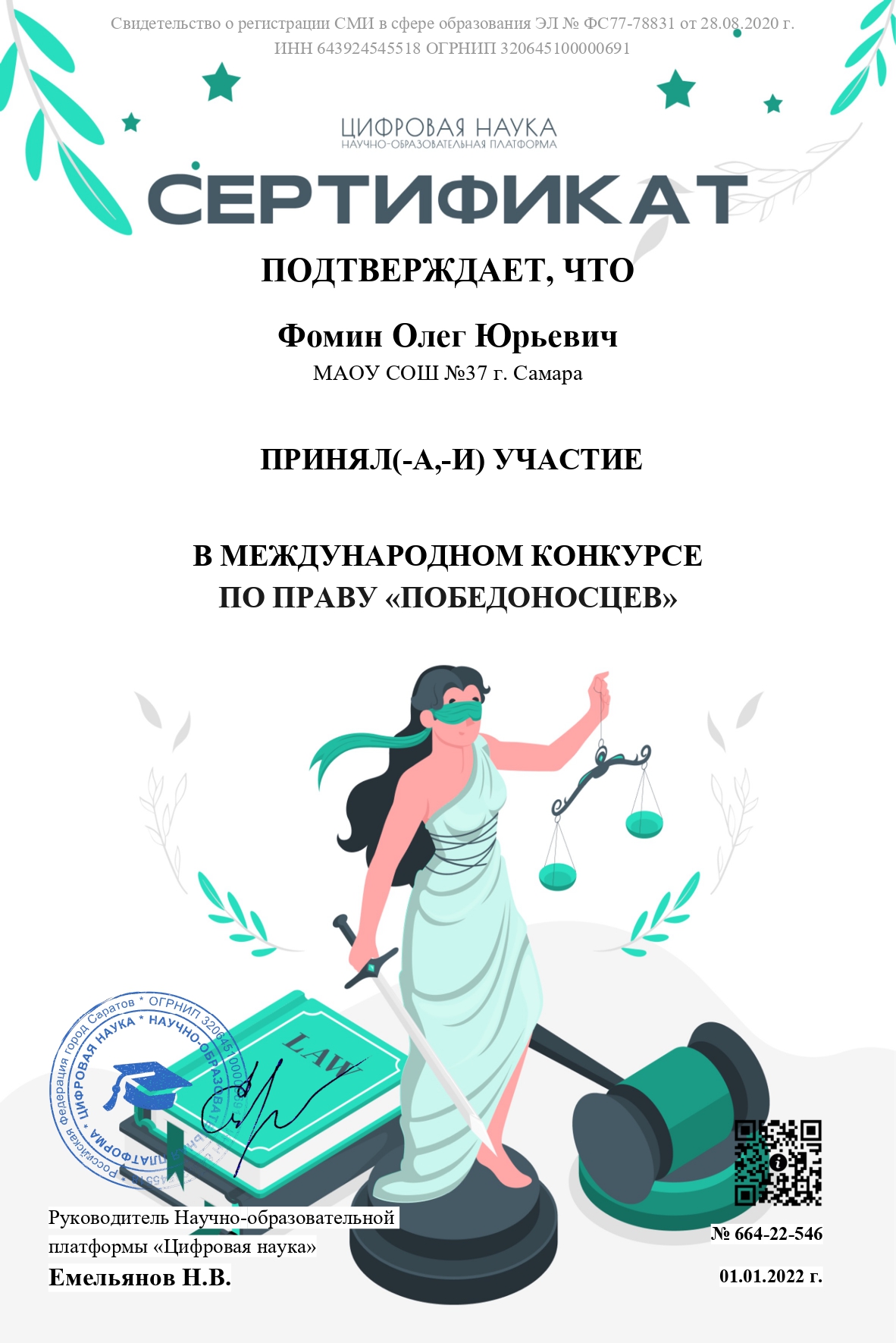 Сведения о регистрации СМИ Эл № ФС 77 - 78831 от 28.08.2020